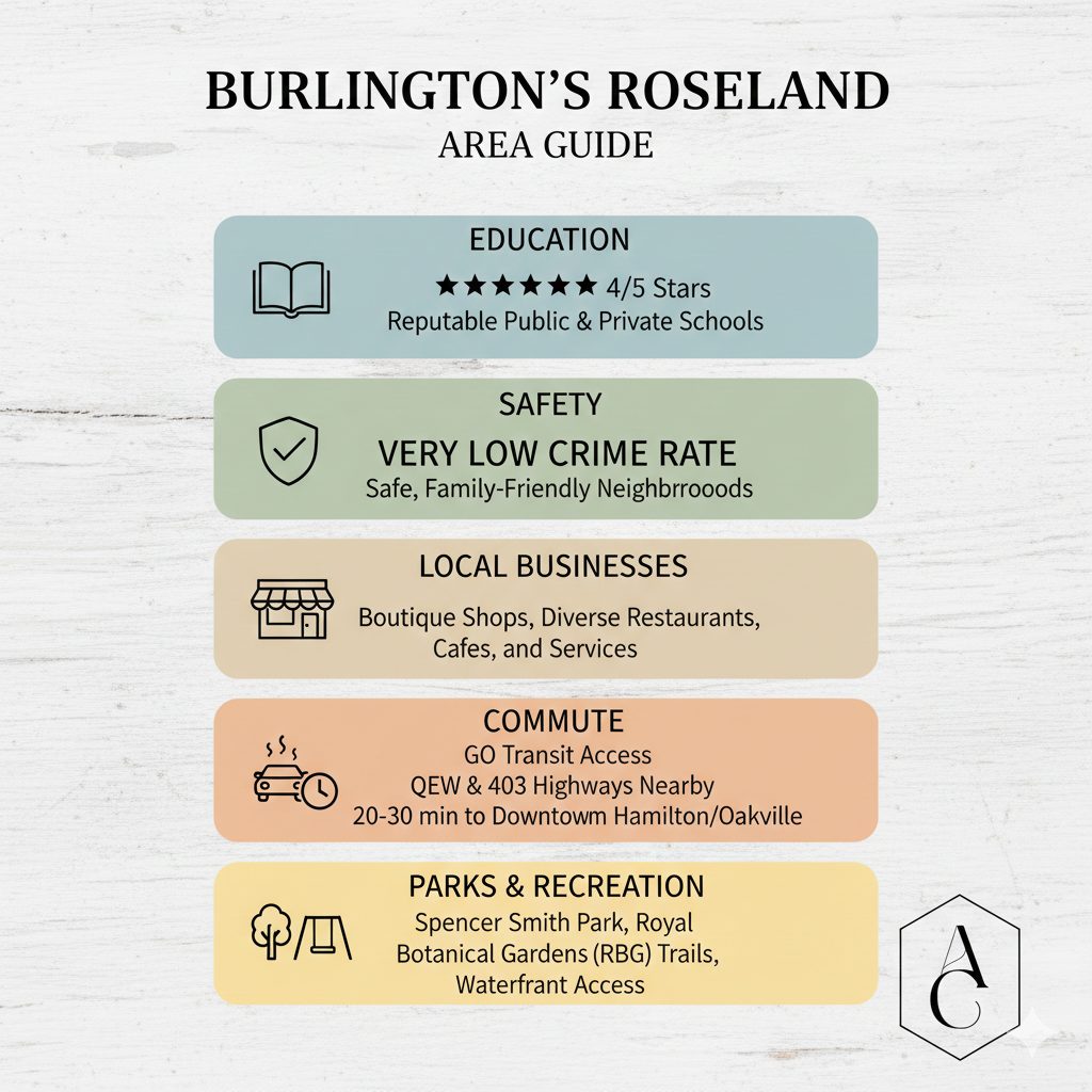 One of the biggest questions people ask before moving is, “Is it safe?” The short answer for Roseland is: Yes. Burlington consistently ranks as one of the safest cities in Canada, and Roseland specifically is one of its most secure pockets. Crime rates in this neighborhood are estimated to be roughly 60-70% lower than the Ontario average. While no area is completely immune to minor property issues like car break-ins, the community’s watchful eye and the quiet, residential nature of the streets make it a place where you’ll still see kids playing outside until the streetlights come on.